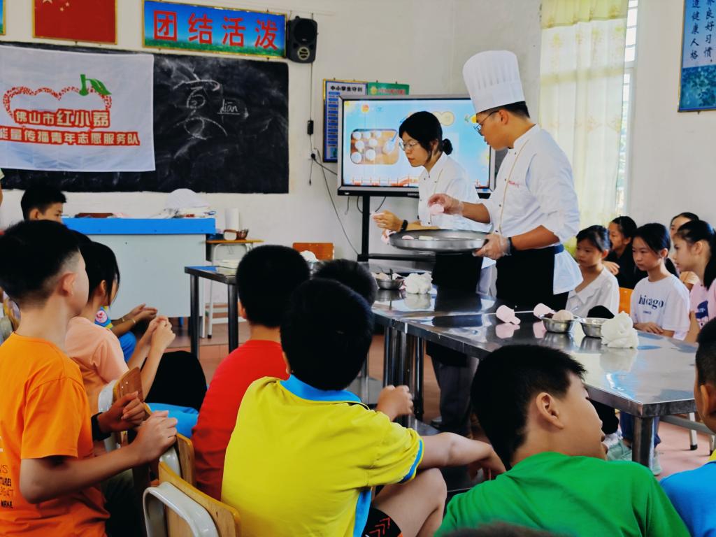 “粤顺厨”志愿者服务队通过挖掘肇庆百年非遗“陈传腐乳”的美食故事,打造“陈传腐乳”博物研学馆,开发系列腐乳预制菜品,用首播超5000的播放量与上万元级的企业订单,打出了“文化挖掘+直播带货+企业对接+预制菜产品研发”组合拳,助力写好肇庆非遗腐乳故事;针对茂名柏桥村推进荔枝深加工的发展需求,首创“顺‘荔’宴”,利用“茂名食材+顺德厨艺”,结合荔枝加工,通过研发荔枝宴席菜品推动荔枝新业态发展,做好茂名荔枝下半篇文章。社会实践期间,志愿服务队还为当地青年量身设计“饮品培训班”,为青年创业就业提供技能支持,为中老年人带来营养膳食课程,面向留守儿童开设冰皮月饼趣味课堂。服务队还联合顺德“义齐爱”志愿服务队为柏桥小学捐赠桌椅60套,与佛山市青少宫联合开发2条美食研学路线,深入探索“美食+文旅”生态发展的融合模式。