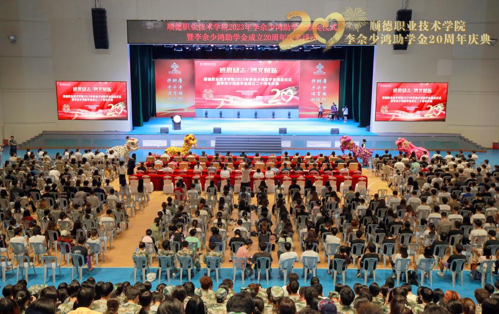 顺德凤岭老年大学校长、李佘少鸿公益事业代理人佘炜,李佘少鸿校董代表胡以钧、李伟霞,顺德区委常委、统战部部长梁伟沛,原顺德市政协主席、学校校董招汝基,顺德区有关部门负责人,学校党政领导班子成员、有关职能部门负责人、各二级学院党总支书记、往届获奖学生代表、师生代表等2000余人参加活动。颁奖仪式由学校党委副书记刘毓主持。