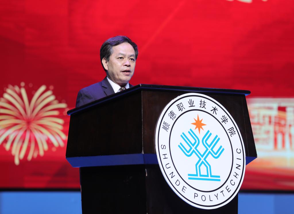 胡以钧代表李佘少鸿校董致辞,祝贺顺职院建校25周年、顺德师范学校办学100周年。他表示,为国家培育优秀人才是社会各界共同肩负的责任,李佘少鸿校董将关怀教育事业视为己任,对于能够参与、支持顺德教育事业感到荣幸,将继续为教育事业、家乡建设贡献力量。